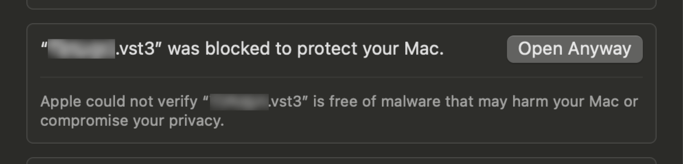 Without signing, software will not run on other apple computers. If you hand someone a freshly built VST3 from your computer, they will be presented with this screen: