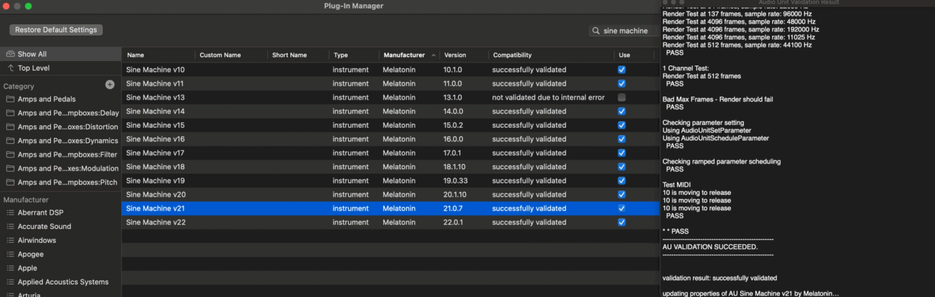 https://melatonin.devFor an Audio Unit v2 plugin to show up in DAWs on the Mac like Apple's Logic Pro, it must pass an Apple validation tool named auvaltool.
