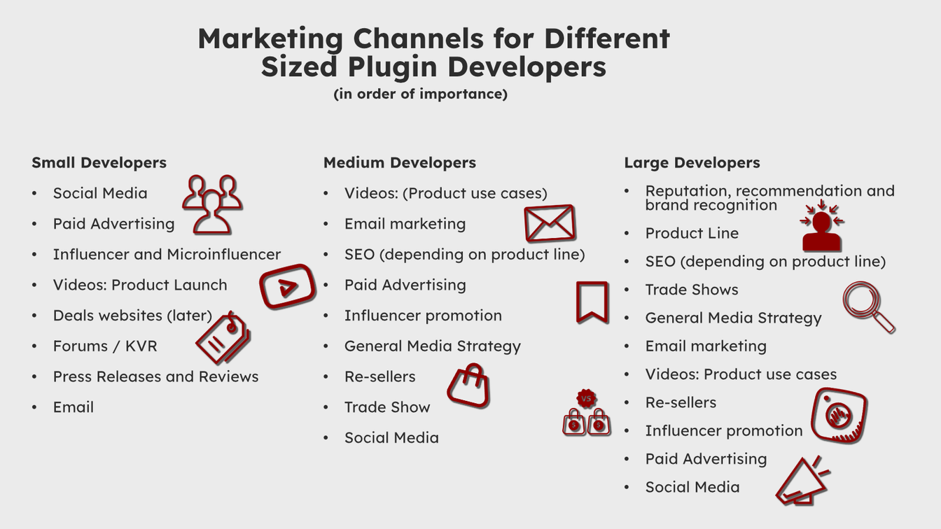 https://www.eggaudio.com/This is the second of two articles in a pair. In the first of these two articles, I outlined how effective marketing differs between small and medium-sized plugin developers, that it was a question of marketing channel usage, and that therefore marketing can play a part in the company’s growth by ensuring a transition through those channels.