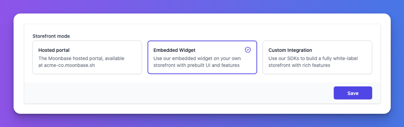 Toggling the storefront mode makes sure all links in emails coming from Moonbase directs customers straight to your website, triggering the Embedded Storefront automatically.