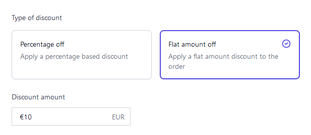 If you want the coupon to only apply to specific products or bundles, that's also possible to configure on the coupon itself. Discounts applied by coupons are made after any product discounts have been applied, if the coupon is combinable with product discounts.