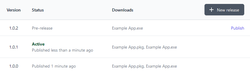 Releases let you roll out new versions of your software, making it available for all owners to download new installers or binaries. It's also possible to have un-released binaries stored, for later publishing.